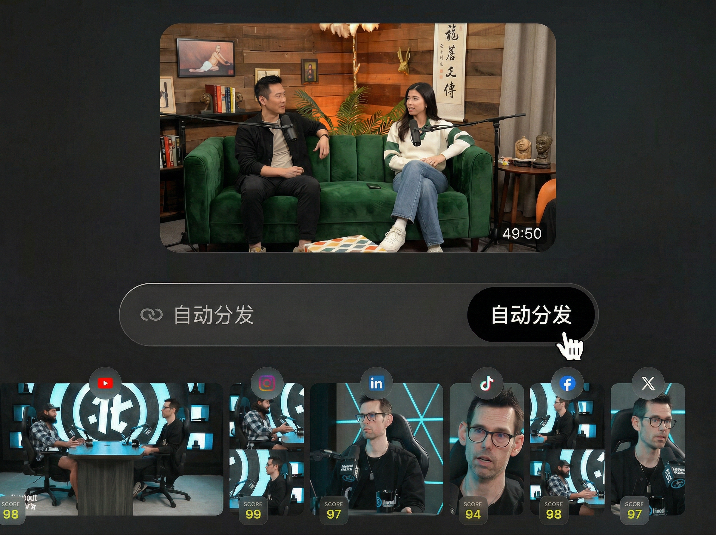 深度访谈视频,一条深度优质访谈,多条切片智能分发。